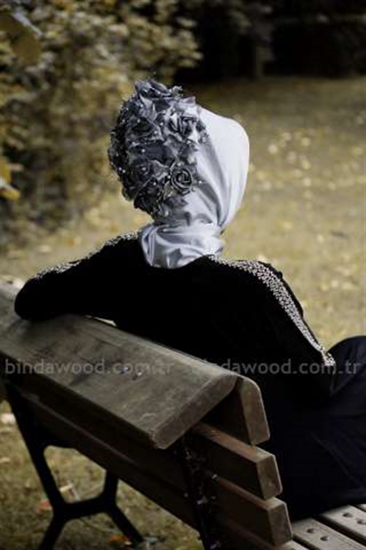 Gri Siyah Abiye Hazır Türban Her mevsim uygun alanlarda çok rahat kullanılabilir.