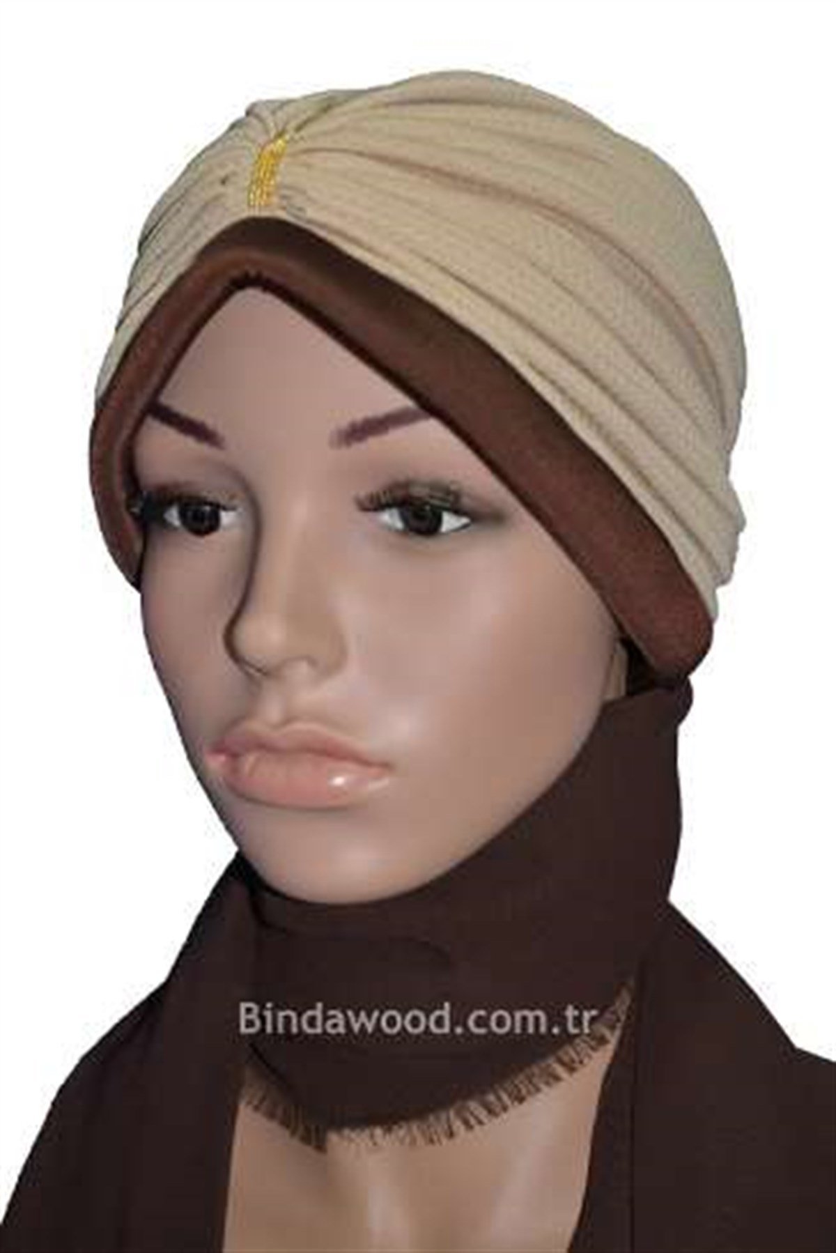 Kahve Bej Vako Abiye Türban modeli her mevsim uygun alanlarda başörtü olarak kullanılabilir
