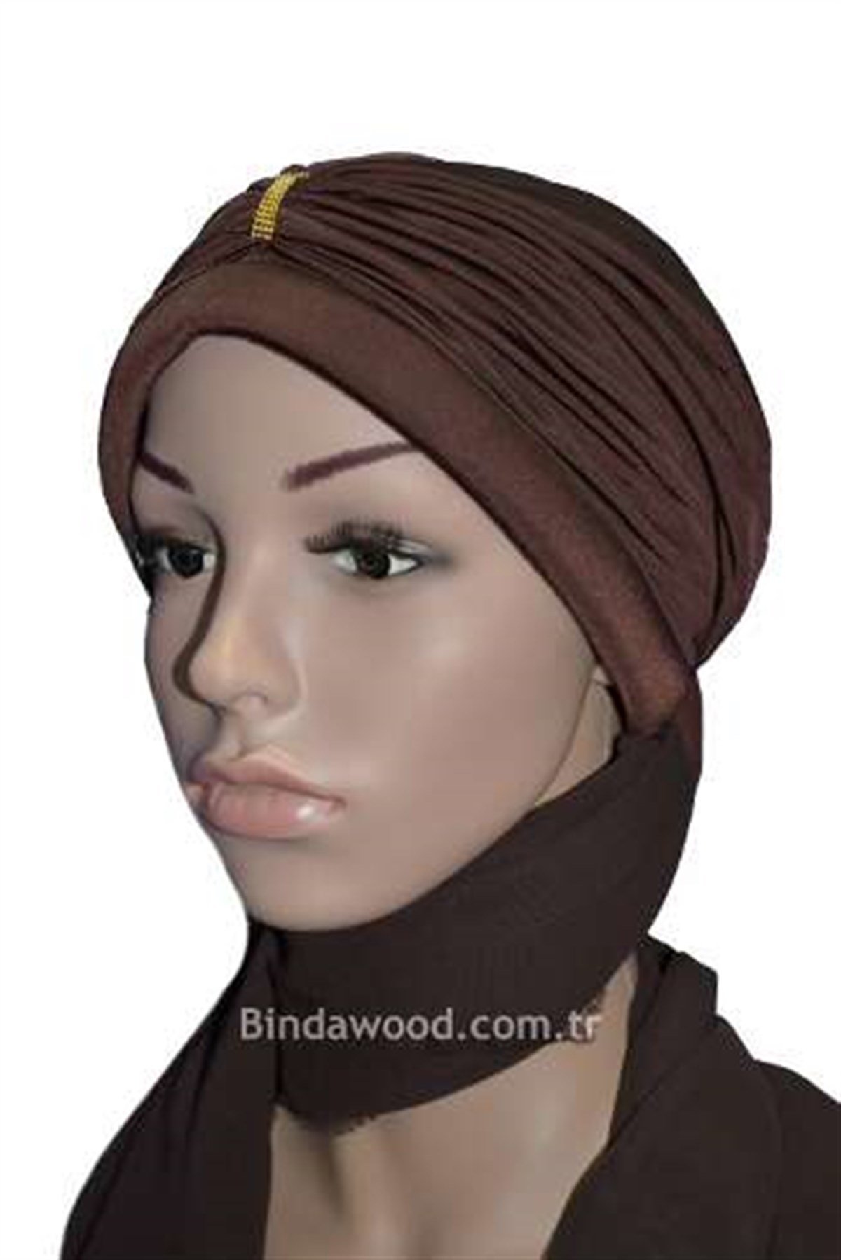 Kahverengi Vako Abiye Türban modeli her mevsim uygun alanlarda başörtü olarak kullanılabilir