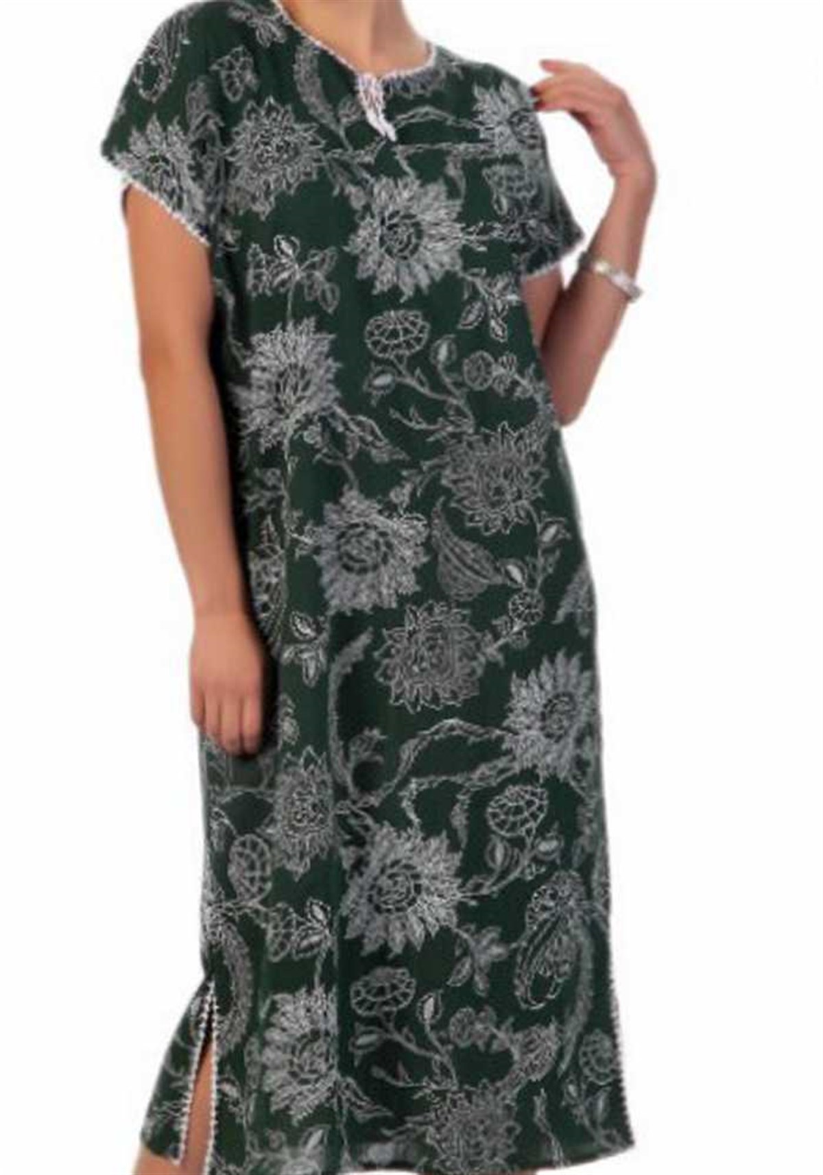 Kısa Kollu Şilebezi Yeşil Elbise pamuklu ürün. Sıcak yaz günlerinde dışarıda, yazlıkta, evde rahatlıkla kullanılır. Teni serin tutar. Farklı renk ve desenlerde üretilmiştir.