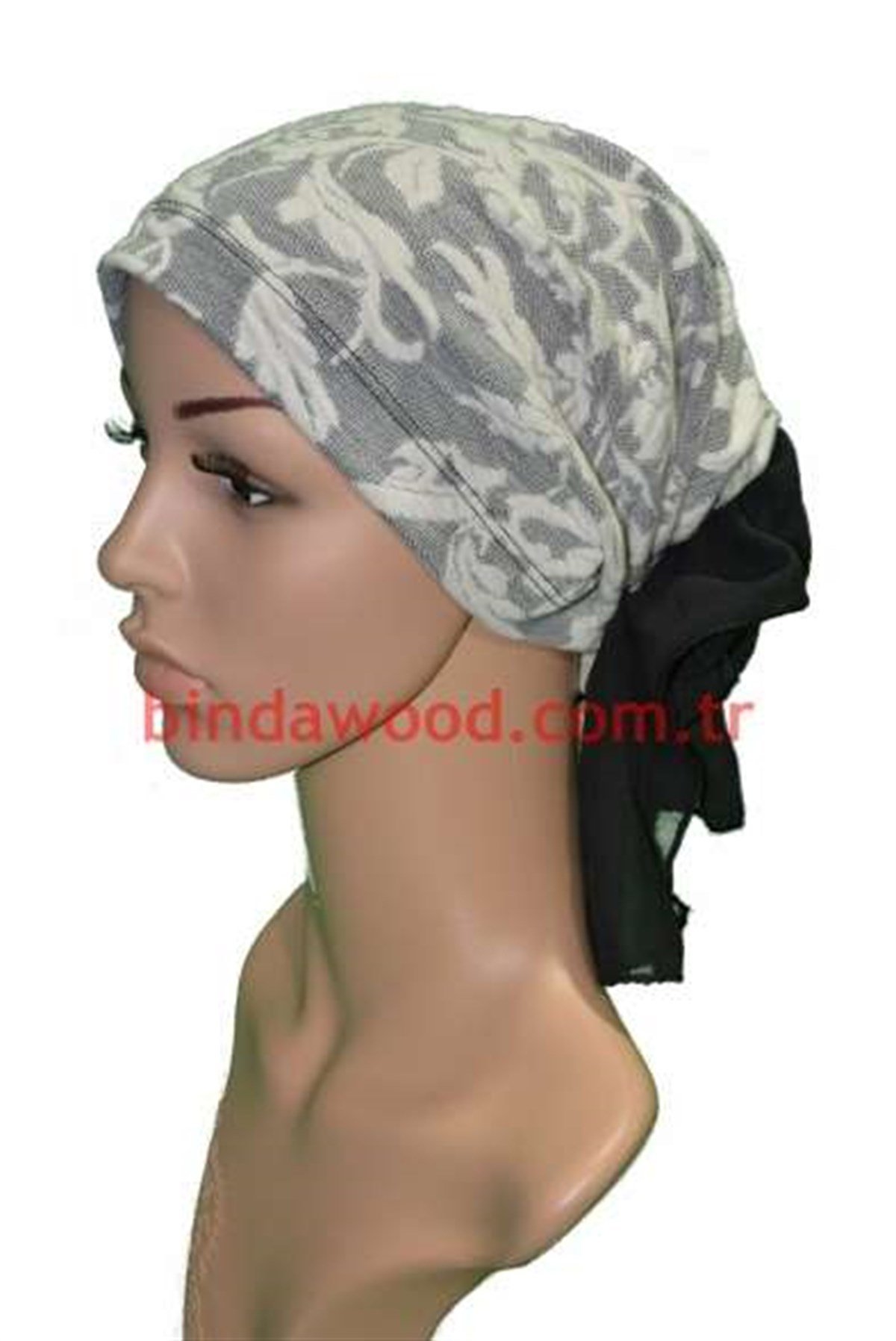 Kışlık Tüllü Gri Krem Abiye Tesettür Türban modeli her mevsim uygun alanlarda başörtü olarak kullanılabilir