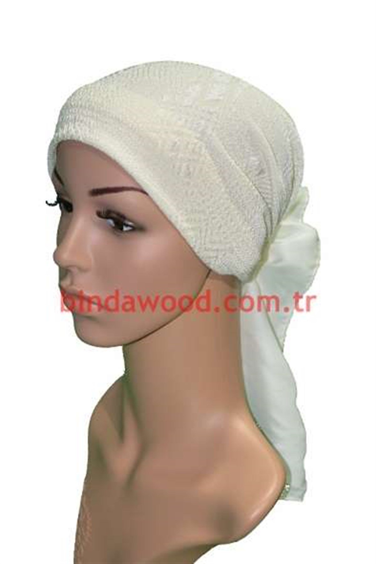 Krem Rengi Tüllü Tesettür Türban modeli her mevsim uygun alanlarda başörtü olarak kullanılabilir