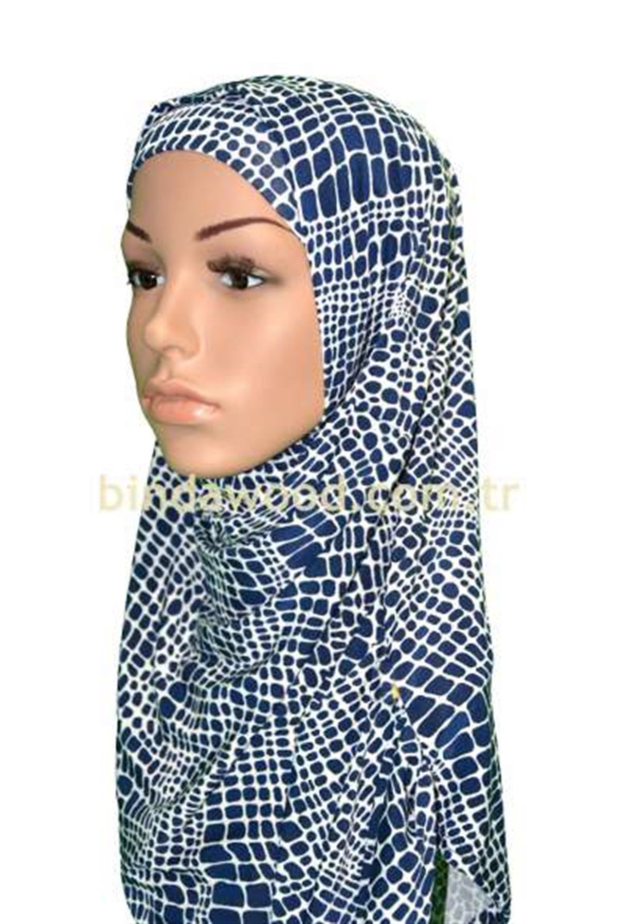 Lacivert beyaz desenli türban pratik eşarpla tesettür şimdi çok pratik hızlı zahmetsiz.Bu konforu pratik eşarpla yaşayın.