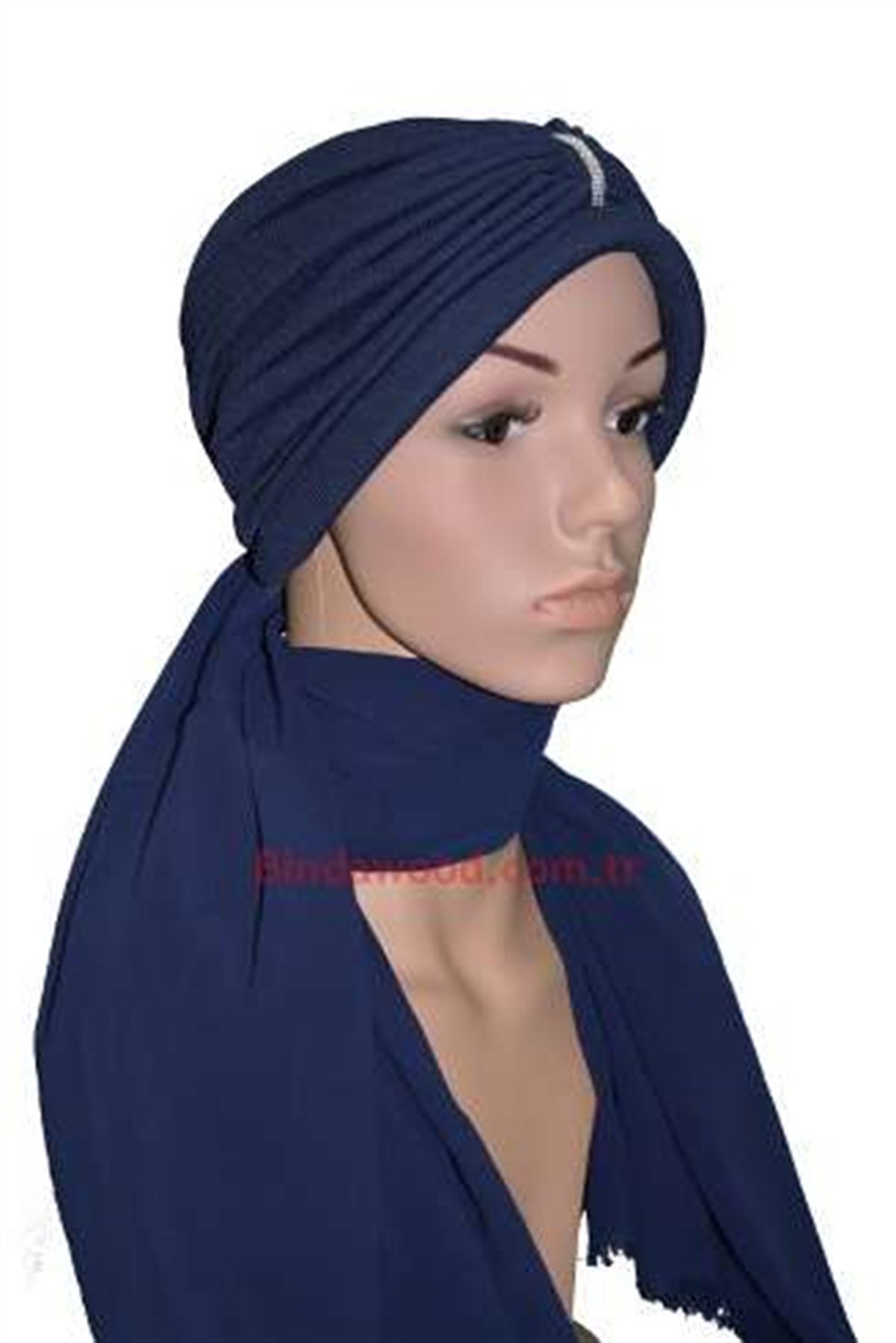 Lacivert Abiye Türban modeli her mevsim uygun alanlarda başörtü olarak kullanılabilir