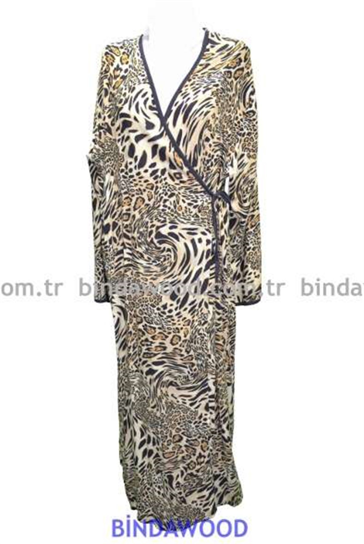 Leopar Desenli Kruvaze Namaz Kıyafeti viskon sağlıklı dokuma