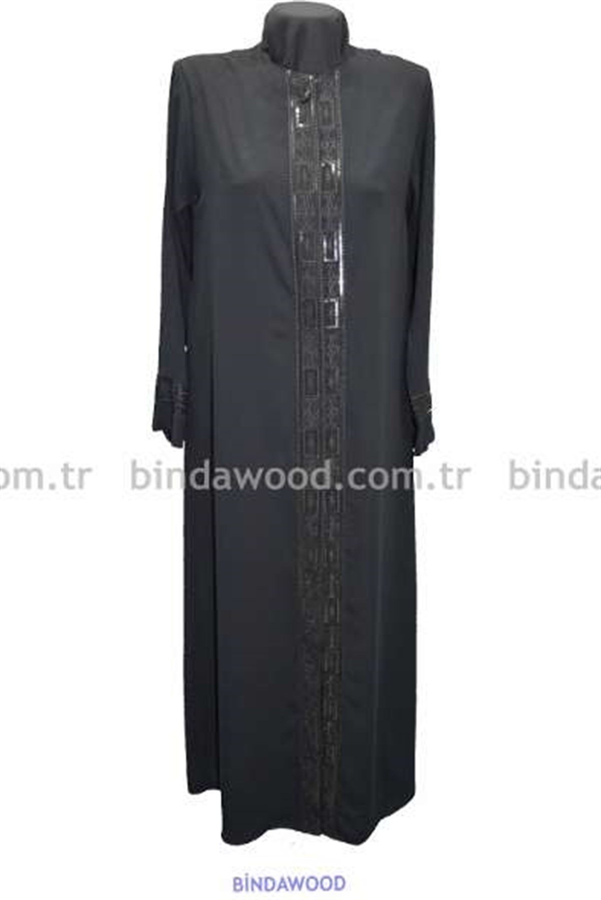 Pullu Nakışlı Siyah Gizli Düğmeli Ferace her mevsim uygun alanlarda Dış Giyim olarak kullanılabilir.