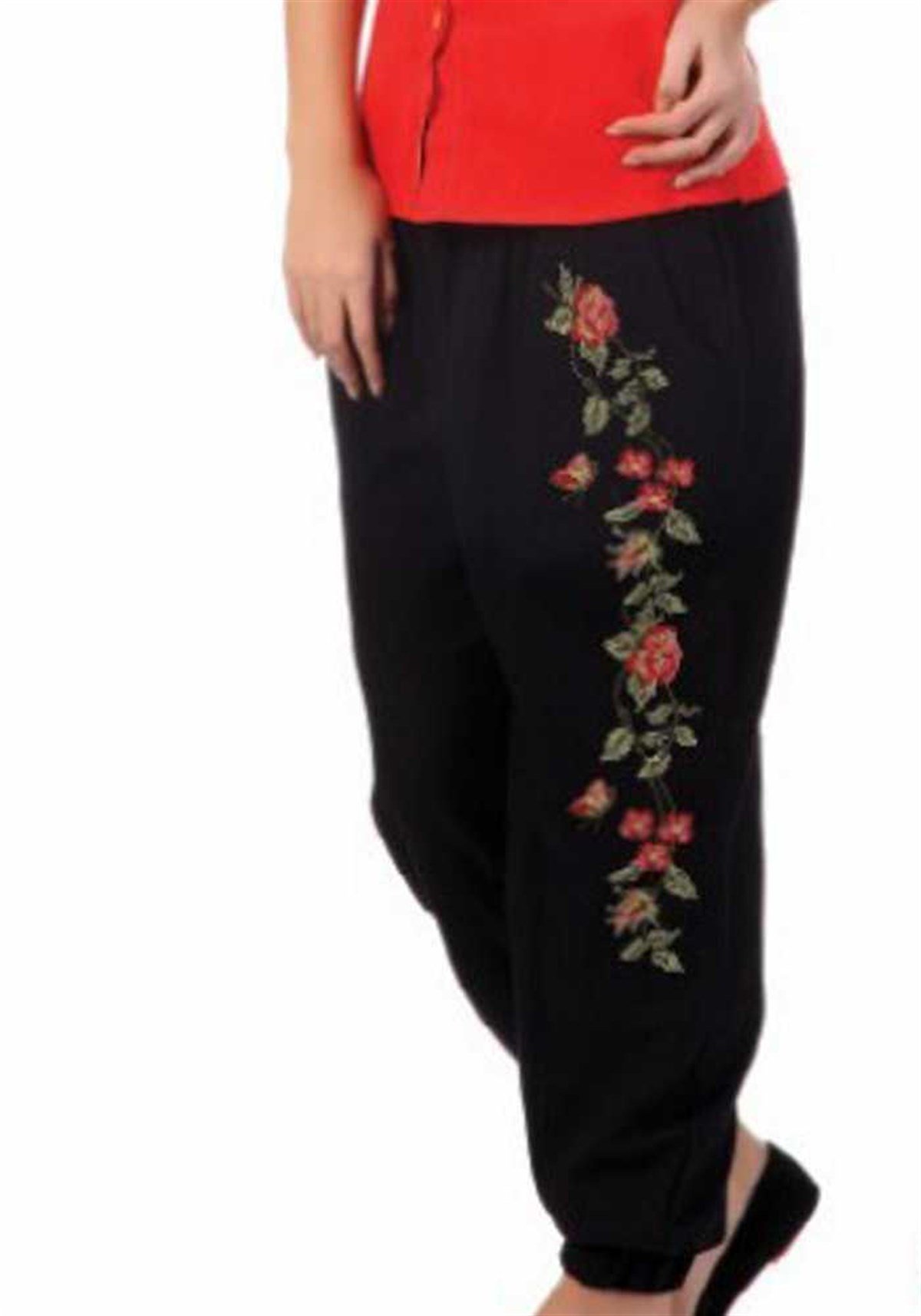 Şalvar Nakışlı Siyah Şilebezi Rahat Kalıp Pamuklu beli lastikli, iki yandan cepli, yarım şalvar, pantolon kalıbında ürün. Günlük yaşamda rahat kullanılır ve teni rahat tutar.
