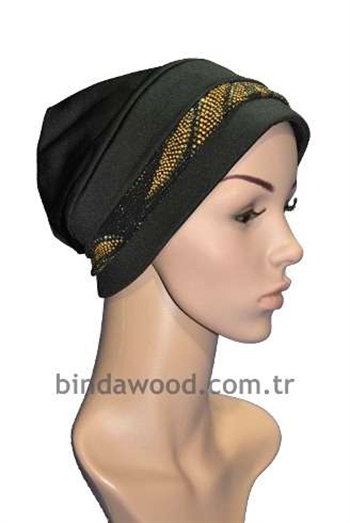 Sarı Siyah Desenli Fantazi Abiye Türban Bone modeli her mevsim uygun alanlarda başörtü olarak kullanılabilir