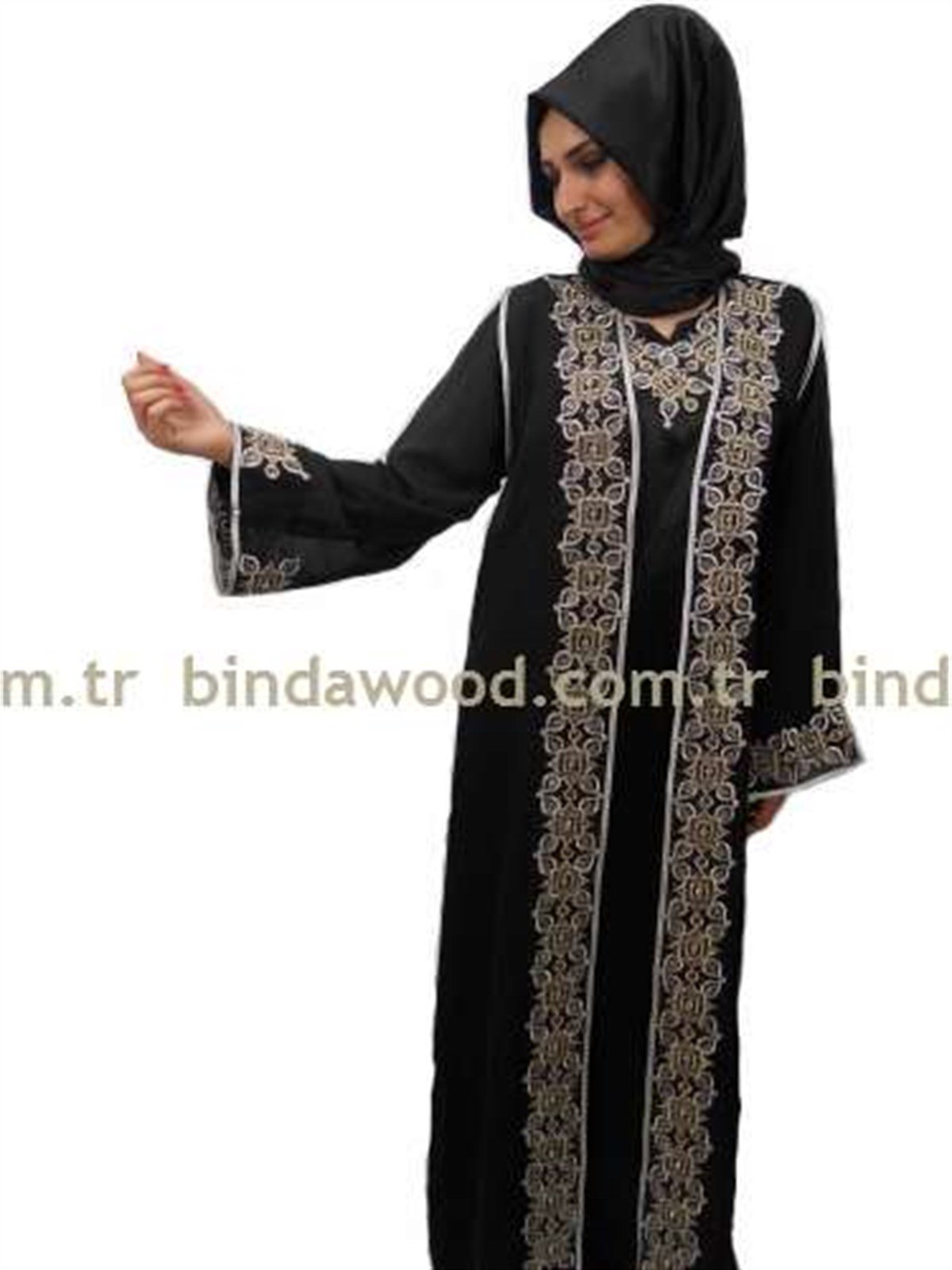 Siyah Nakışlı Kaftan Takım Tesettür Ferace uygun alanlarda Dış Giyim olarak kullanılabilir.
