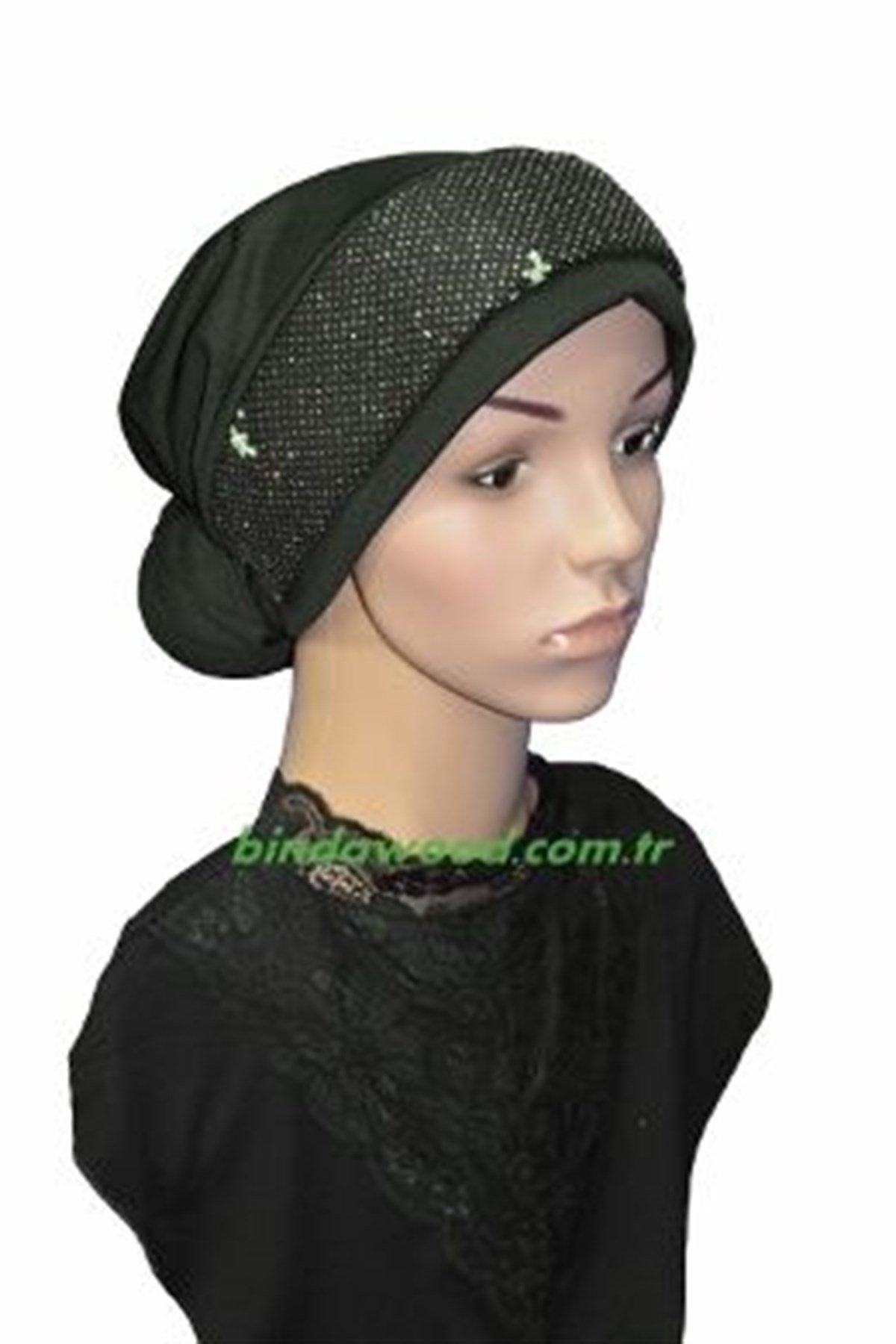 Siyah Pullu Bantlı Topuzlu Abiye Türban Bone modeli her mevsim uygun alanlarda başörtü olarak kullanılabilir