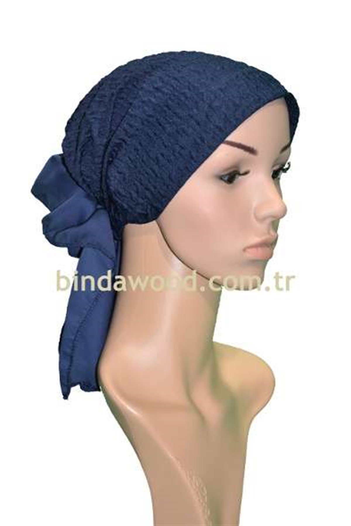 Tüllü Lacivert Abiye Tesettür Türban modeli her mevsim uygun alanlarda başörtü olarak kullanılabilir