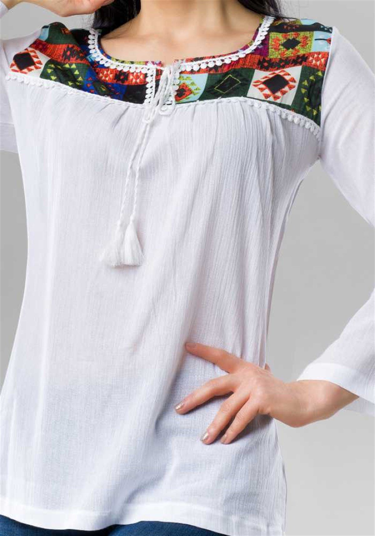 · Yakası Desenli Beyaz Bluz,hassas şilebezi pamuklu kumaşlardan özenle hazırlanmıştır.Her zaman moda ürünler tam size göre